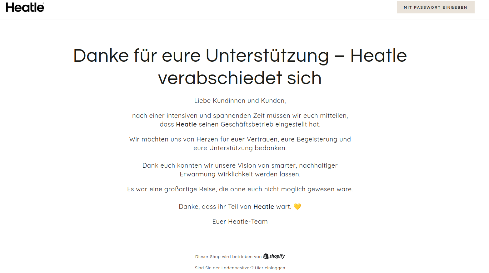 Ich war gerade mal wieder auf der Heatle-Website unterwegs. Der "Ofen ist aus" - Geschäftsbetrieb eingestellt.